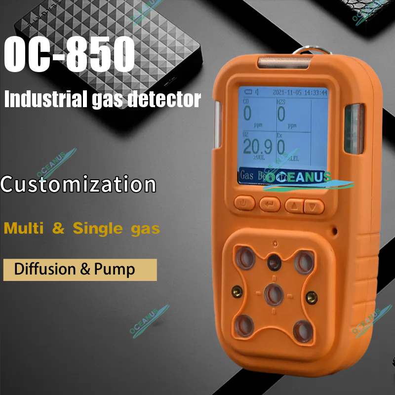 OC-850 portalbe gas detector with the imported sensor, for 1~5 gas detecting, with the diffusion sampling, also could be connected with the external pump. Widely range applications, such as the petroleum, chemical industry, biology, water treatment, enviroment protection, underground work, municipal construction, lab research and other place need to detect the combustible or toxic gas concentration.